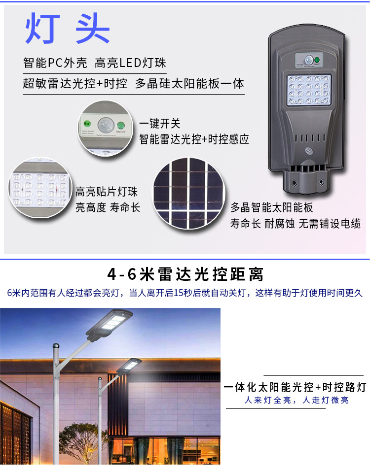太陽能庭院燈戶外一體感應路燈家用超亮新農村