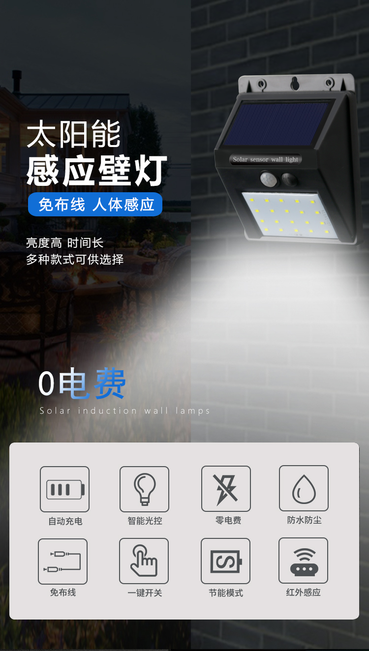 太陽能燈戶外感應燈室外庭院燈小壁燈超亮新農